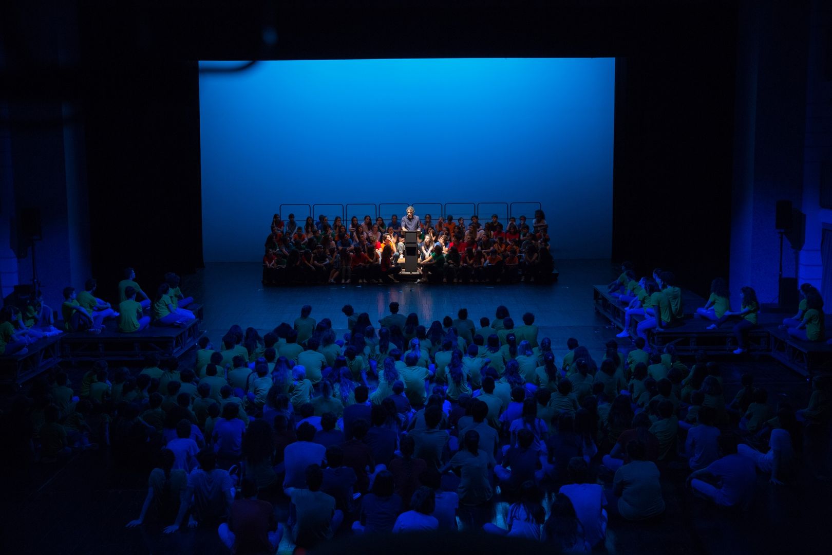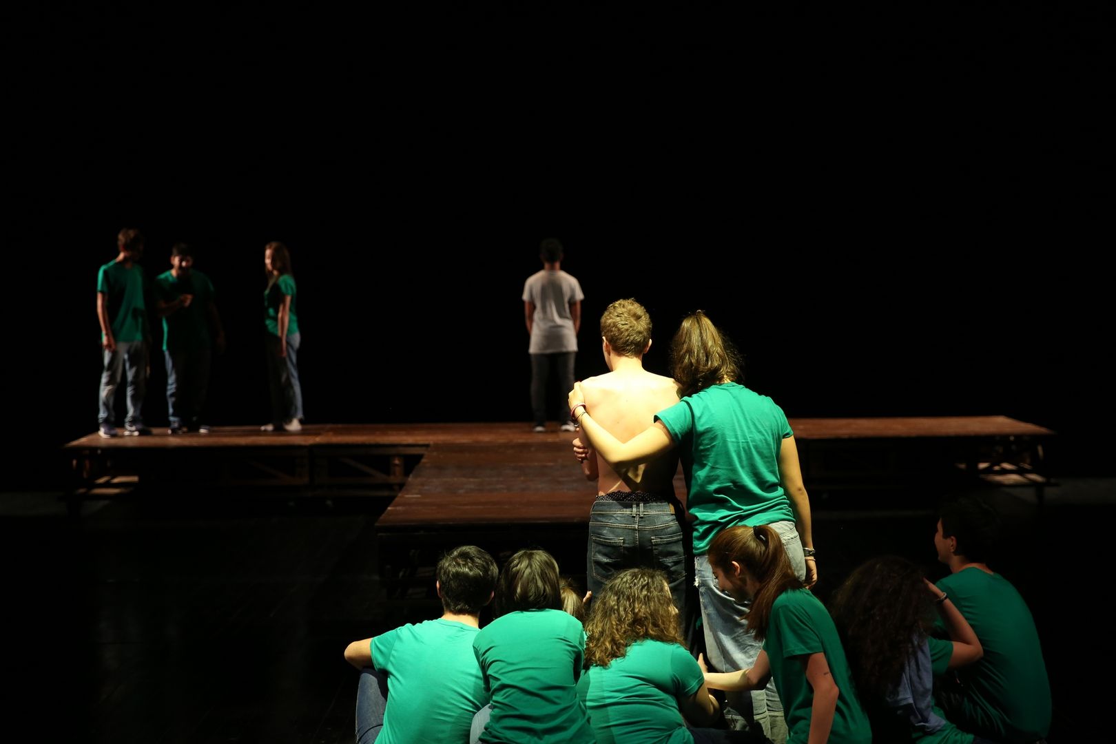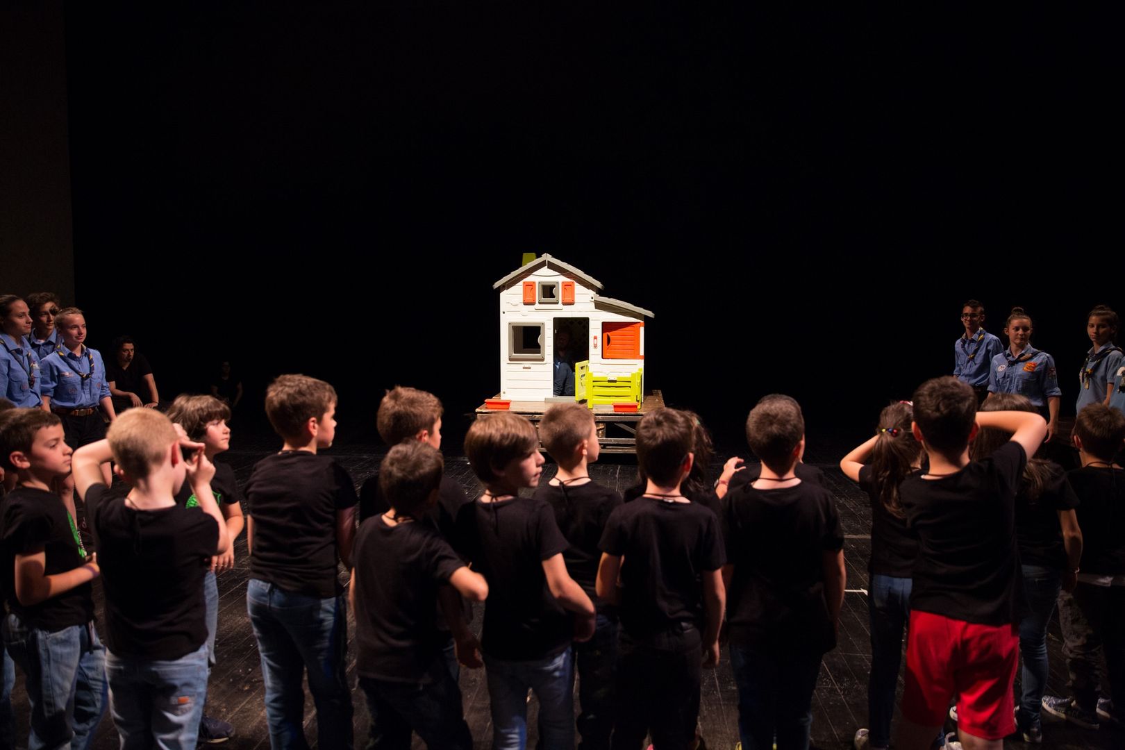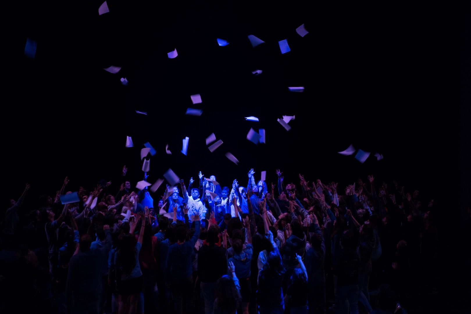 Un gioco di cori che si inseguono, di voci che si rincorrono, di coreografie che portano l’azione sui palchi e in platea, di parole nate dal lavoro che i drammaturghi professionisti del Teatro dell’Argine hanno fatto con i giovanissimi partecipanti nel corso di un anno di laboratorio teatrale: una pratica di teatro condiviso, un ambizioso lavoro di ascolto e di partecipazione attiva.